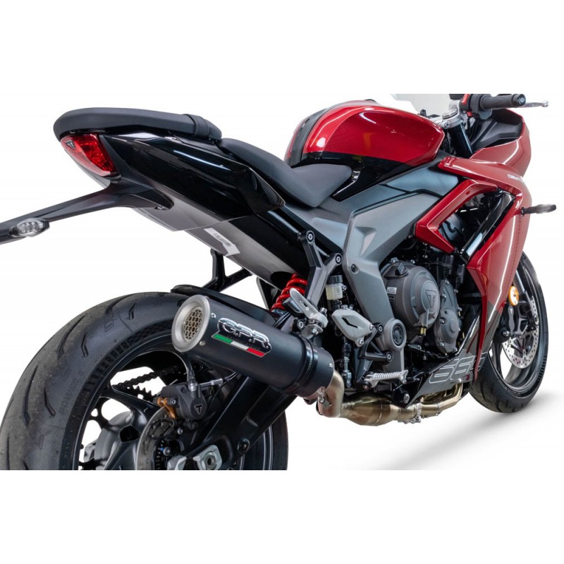 Scarico GPR compatibile con Triumph Daytona 660 2023-2025, M3 Black Titanium, Scarico completo racing, fornito con db killer estraibile e collettore, non conforme per uso stradaleDestinatario :